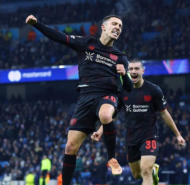 格里马尔多破门,勒沃库森队史第二次欧冠做客英格兰取得领先